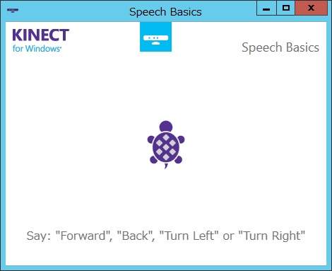 サンプルでは,"Forward"や"Back"という英語を認識して亀を動かす内容になっていますが,この部分を"まえ"や"うしろ"といった日本語の音声を認識して動かすようにソースコードを変更してみます.