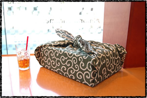 日本の物流の基本(?)であるふろしきと,小さなものを包むときに便利なハンカチをそれぞれ1名さまにプレゼントします.